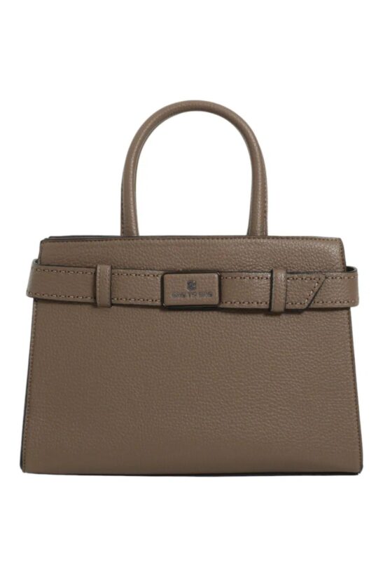 Αυτή η κλασική τσάντα χειρός αποτελεί την ιδανική επιλογή για κάθε γυναίκα που αναζητά φινέτσα και οργάνωση. Το αυστηρό satchel σχήμα της την καθιστά κατάλληλη για επαγγελματικές εμφανίσεις, ενώ η υφή δερματίνης και η διακοσμητική ζώνη στο μπροστινό μέρος προσθέτουν μια νότα πολυτέλειας.