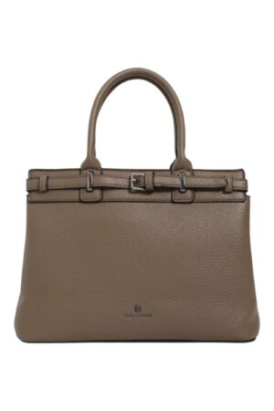 Αναδείξτε το στυλ σας με αυτή την εκλεπτυσμένη γυναικεία τσάντα. Το κύριο χαρακτηριστικό της τσάντας είναι η διακοσμητική ζώνη με μεταλλικές αγκράφες στο πάνω μέρος, που προσθέτει μια μοναδική πινελιά και ενισχύει τον elegant χαρακτήρα της. Η τσάντα είναι εξαιρετικά λειτουργική, διαθέτοντας κοντές λαβές για το χέρι και αποσπώμενο, ρυθμιζόμενο λουράκι ώμου για περισσότερες επιλογές στη χρήση. Κατασκευασμένη από υψηλής ποιότητας συνθετικό δέρμα με διακριτική ανάγλυφη υφή, είναι ανθεκτική και διατηρεί το σχήμα της. Ο ευρύχωρος εσωτερικός χώρος της μπορεί να χωρέσει όλα τα απαραίτητα για την καθημερινότητά σας, ενώ το ασφαλές κλείσιμο με φερμουάρ προσφέρει προστασία στα προσωπικά σας αντικείμενα.
