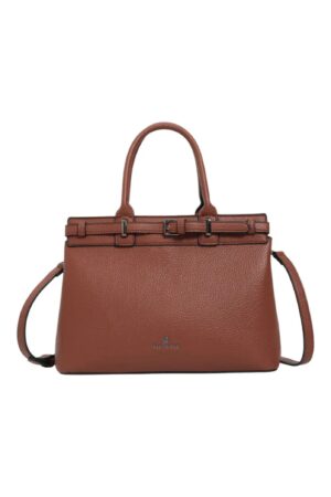 Αναδείξτε το στυλ σας με αυτή την εκλεπτυσμένη γυναικεία τσάντα. Το κύριο χαρακτηριστικό της τσάντας είναι η διακοσμητική ζώνη με μεταλλικές αγκράφες στο πάνω μέρος, που προσθέτει μια μοναδική πινελιά και ενισχύει τον elegant χαρακτήρα της. Η τσάντα είναι εξαιρετικά λειτουργική, διαθέτοντας κοντές λαβές για το χέρι και αποσπώμενο, ρυθμιζόμενο λουράκι ώμου για περισσότερες επιλογές στη χρήση. Κατασκευασμένη από υψηλής ποιότητας συνθετικό δέρμα με διακριτική ανάγλυφη υφή, είναι ανθεκτική και διατηρεί το σχήμα της. Ο ευρύχωρος εσωτερικός χώρος της μπορεί να χωρέσει όλα τα απαραίτητα για την καθημερινότητά σας, ενώ το ασφαλές κλείσιμο με φερμουάρ προσφέρει προστασία στα προσωπικά σας αντικείμενα.