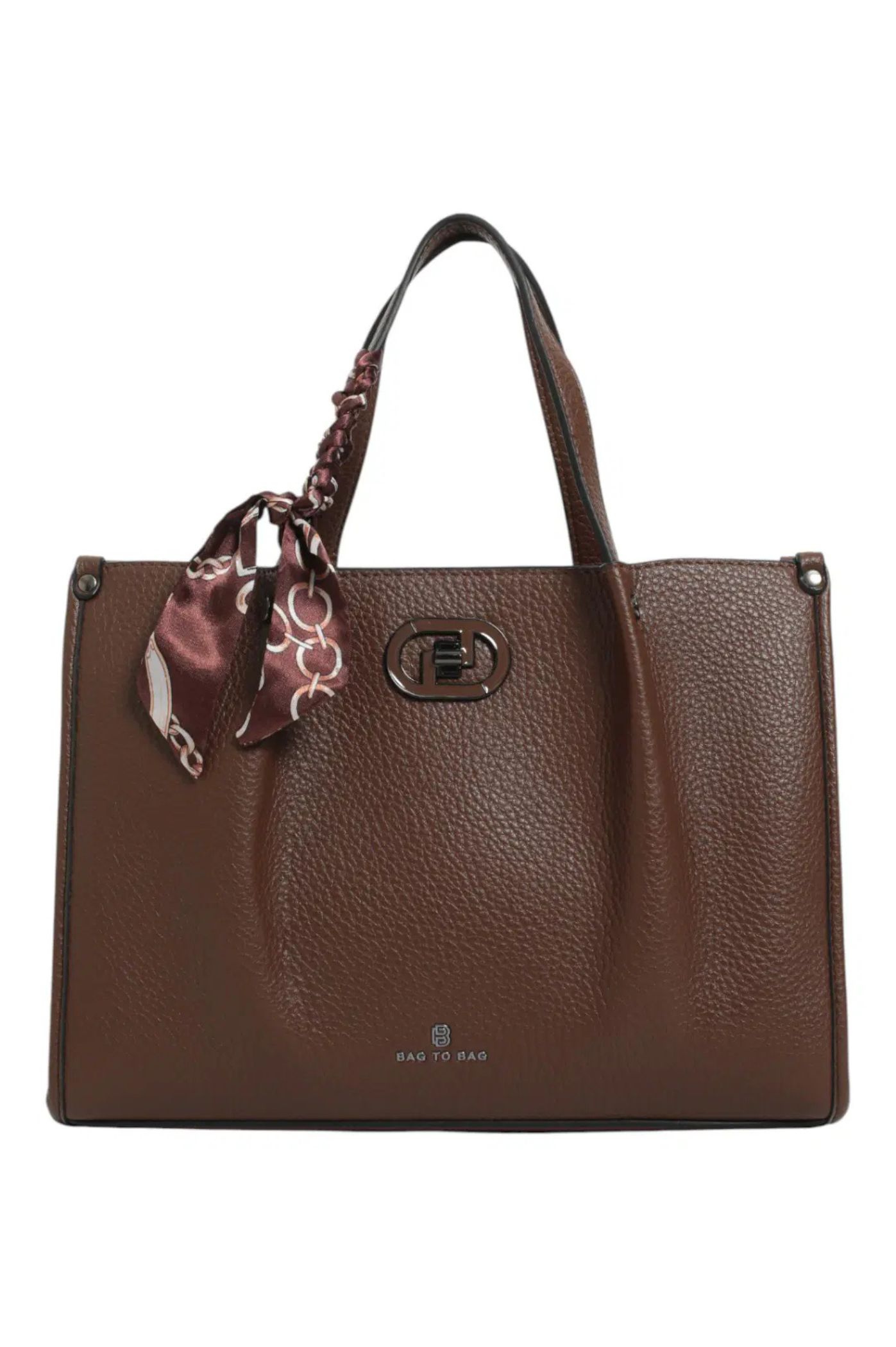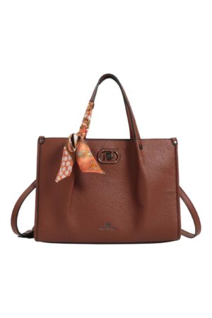 Αναδείξτε το στυλ σας με αυτή την εντυπωσιακή και ευρύχωρη γυναικεία τσάντα χειρός και ώμου. Αυτό που την κάνει να ξεχωρίζει είναι το διακοσμητικό φουλάρι με πολύχρωμο μοτίβο που είναι δεμένο στο χερούλι, προσθέτοντας μια μοντέρνα και θηλυκή πινελιά. Η μεταλλική αγκράφα με το λογότυπο στο μπροστινό μέρος και οι λεπτομέρειες στο χερούλι ολοκληρώνουν το στυλ. Η τσάντα διαθέτει δύο μεγάλες λαβές που επιτρέπουν να τη φορέσετε τόσο στον ώμο όσο και στο χέρι, για άνετη χρήση όλη μέρα. Κατασκευασμένη από υψηλής ποιότητας συνθετικό δέρμα με ανάγλυφη υφή, είναι ανθεκτική και διατηρεί το σχήμα της. Το εσωτερικό της είναι αρκετά ευρύχωρο για να χωρέσει όλα τα απαραίτητα, ενώ το φερμουάρ της προσφέρει ασφάλεια στα προσωπικά σας αντικείμενα.