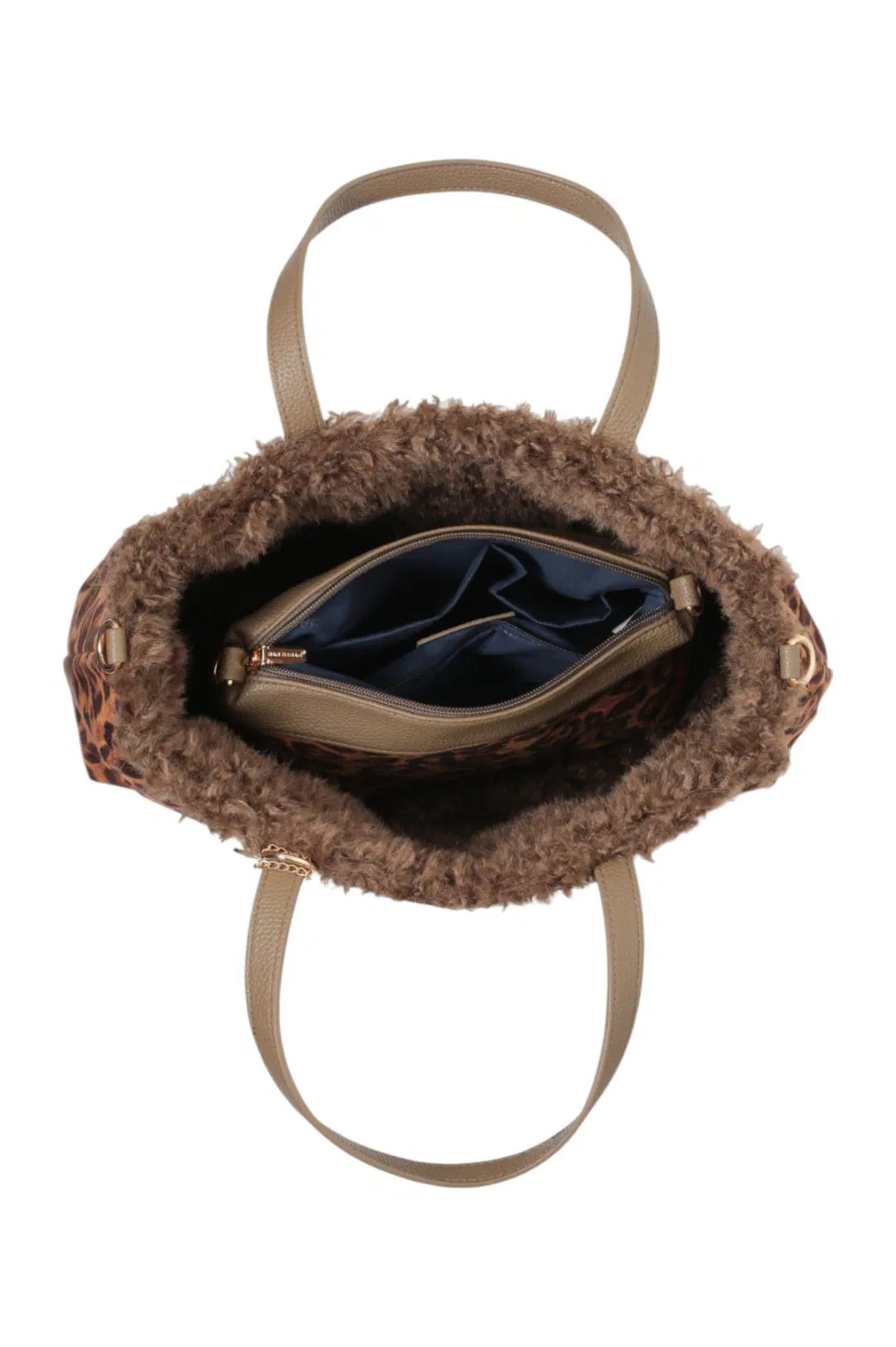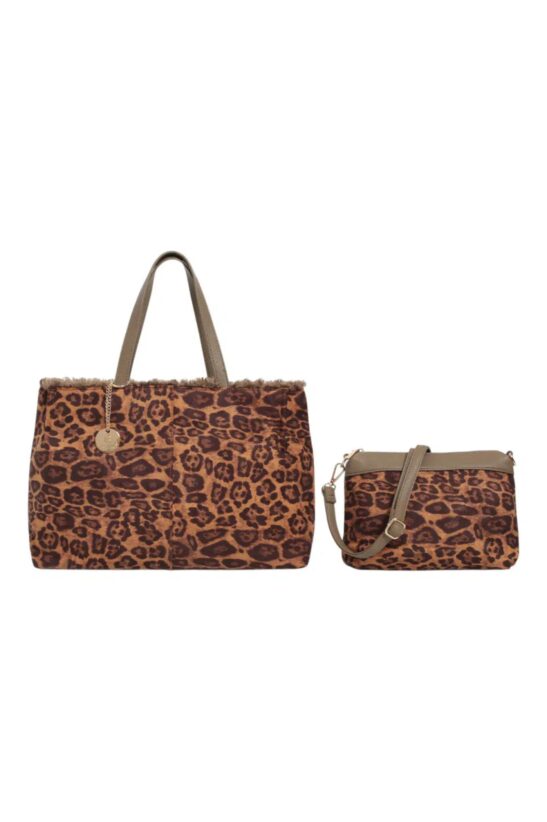 Αυτό το εντυπωσιακό σετ τσαντών είναι ο τέλειος συνδυασμός στυλ και πρακτικότητας. Περιλαμβάνει μια ευρύχωρη τσάντα ώμου με λεοπάρ print και λεπτομέρειες από γούνα, καθώς και μια πρακτική τσάντα χιαστί στο ίδιο σχέδιο.