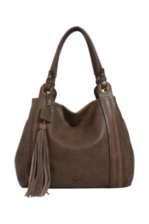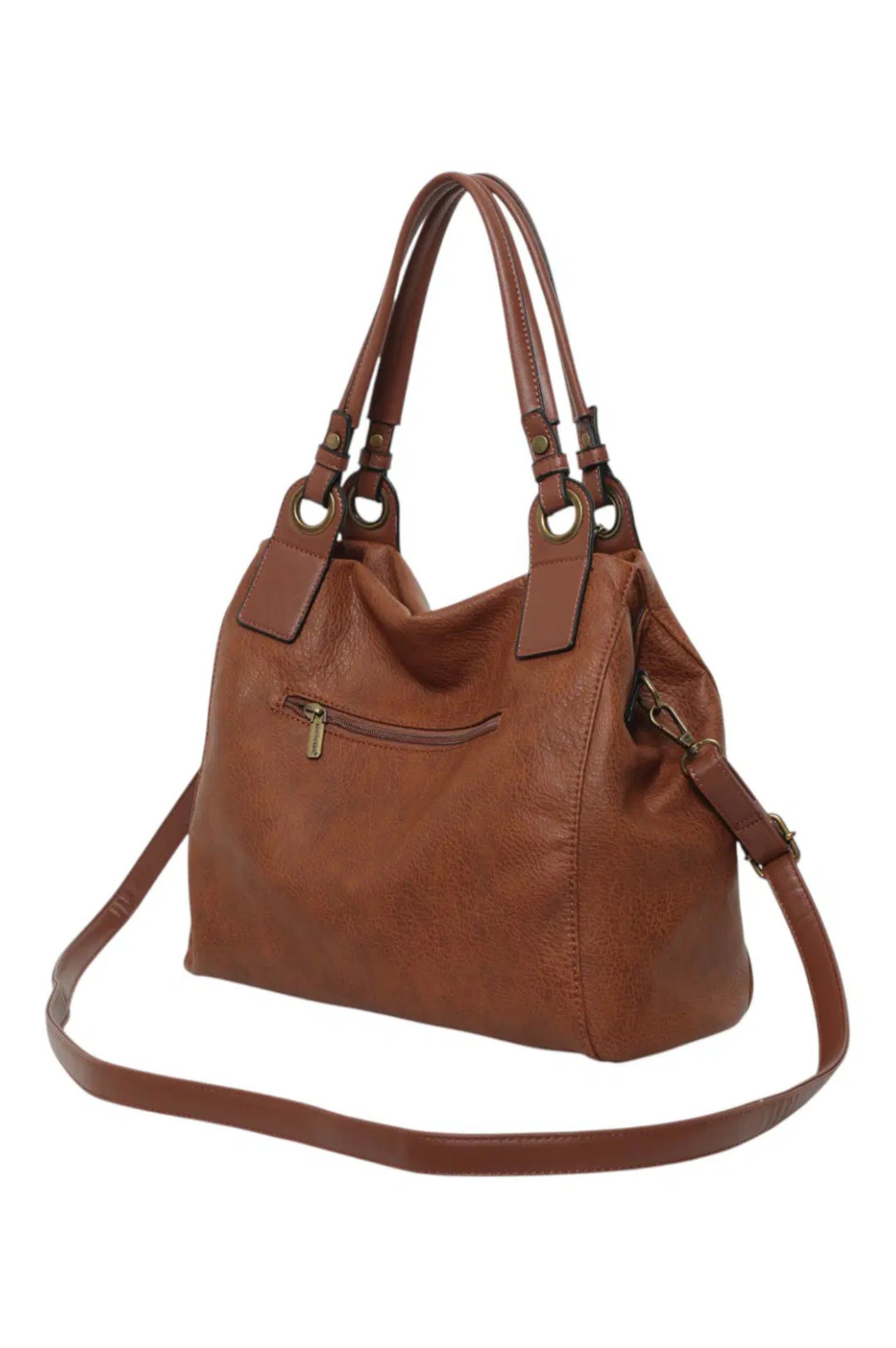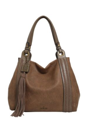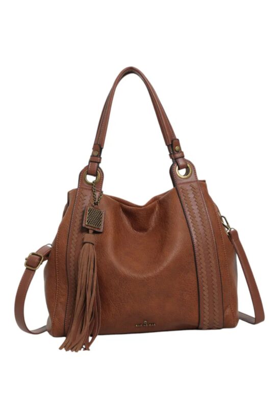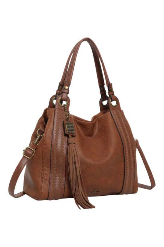 Τσάντα ώμου από υλικό κατασκευής υψηλής ποιότητας τεχνόδερμα! Διαθέτει λουράκι για χιαστή τοποθέτηση με διακοσμητικά κρόσσια.