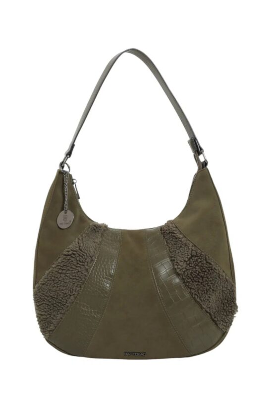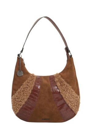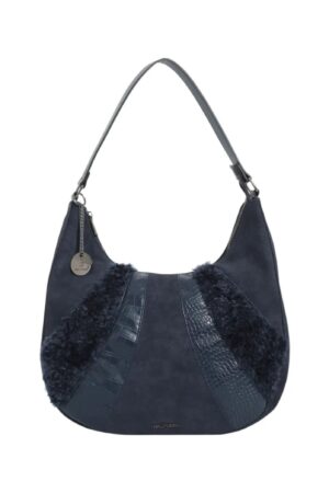 Αυτή η εντυπωσιακή τσάντα ώμου  συνδυάζει άψογα διαφορετικές υφές, δημιουργώντας ένα μοναδικό και κομψό αξεσουάρ. Οι λεπτομέρειες από δερματίνη με ανάγλυφο σχέδιο και οι απαλές γούνινες πινελιές προσδίδουν πολυτέλεια και στυλ.