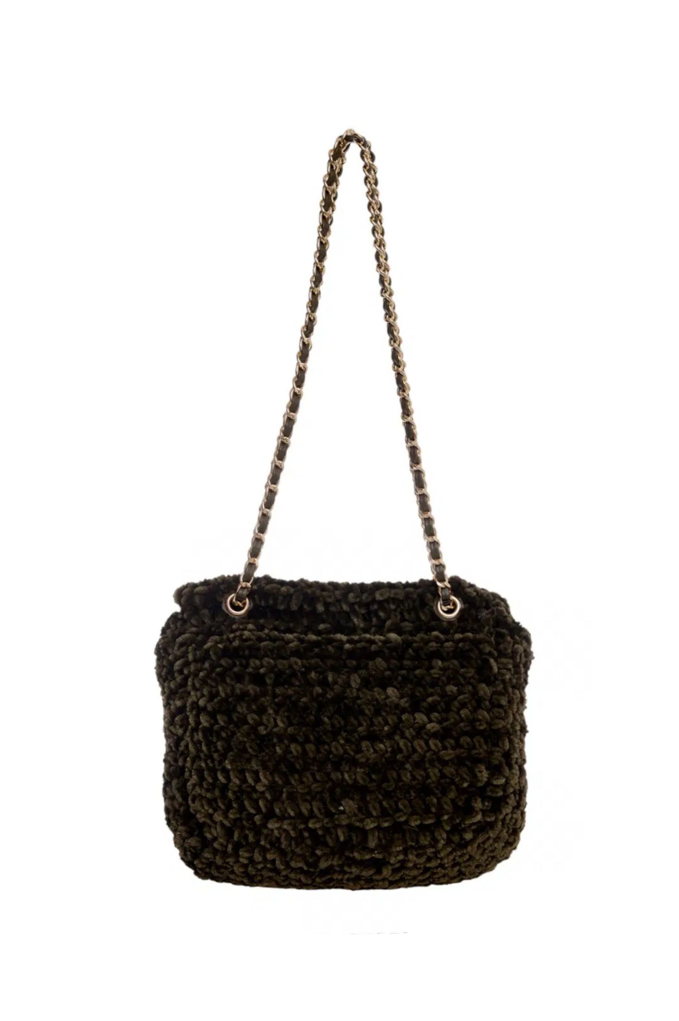 Υιοθετήστε το Cozy Chic στυλ με αυτήν τη μικρή, αλλά εντυπωσιακή τσάντα ώμου. Κατασκευασμένη από εξαιρετικά μαλακή πλεκτή Faux Fur (οικολογική γούνα) σε κλασικό χρώμα, είναι το ιδανικό αξεσουάρ για τις βραδινές ή χειμερινές εμφανίσεις σας. Διαθέτει  σχέδιο με χρυσή μεταλλική αλυσίδα που περνά μέσα από το λουρί και ιδιαίτερο μεταλλικό κούμπωμα. Το μέγεθος είναι ιδανικό για να χωράει τα απαραίτητα, λειτουργώντας ως clutch ή μικρή τσάντα χιαστί.