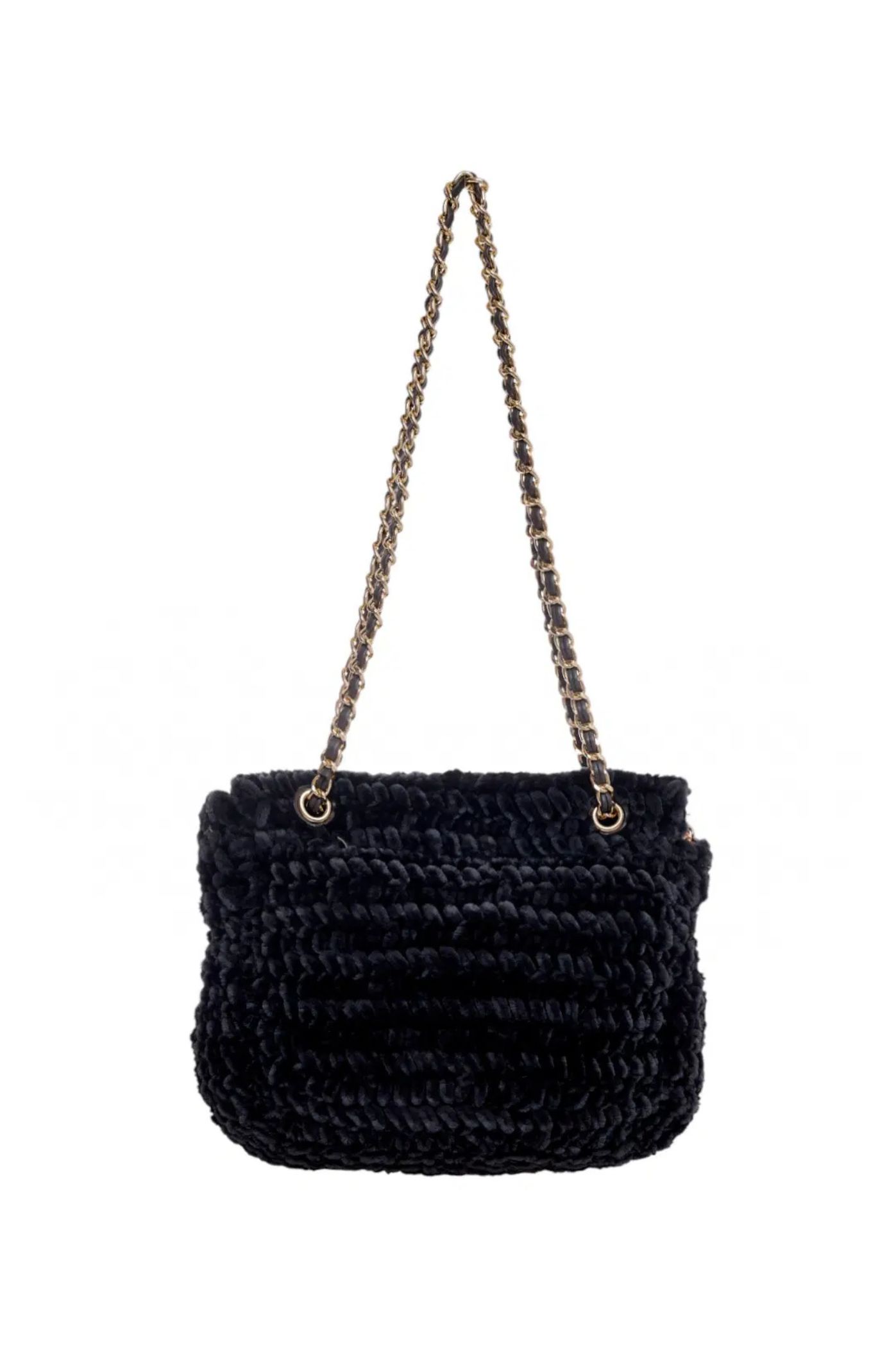 Υιοθετήστε το Cozy Chic στυλ με αυτήν τη μικρή, αλλά εντυπωσιακή τσάντα ώμου. Κατασκευασμένη από εξαιρετικά μαλακή πλεκτή Faux Fur (οικολογική γούνα) σε κλασικό χρώμα, είναι το ιδανικό αξεσουάρ για τις βραδινές ή χειμερινές εμφανίσεις σας. Διαθέτει  σχέδιο με χρυσή μεταλλική αλυσίδα που περνά μέσα από το λουρί και ιδιαίτερο μεταλλικό κούμπωμα. Το μέγεθος είναι ιδανικό για να χωράει τα απαραίτητα, λειτουργώντας ως clutch ή μικρή τσάντα χιαστί.