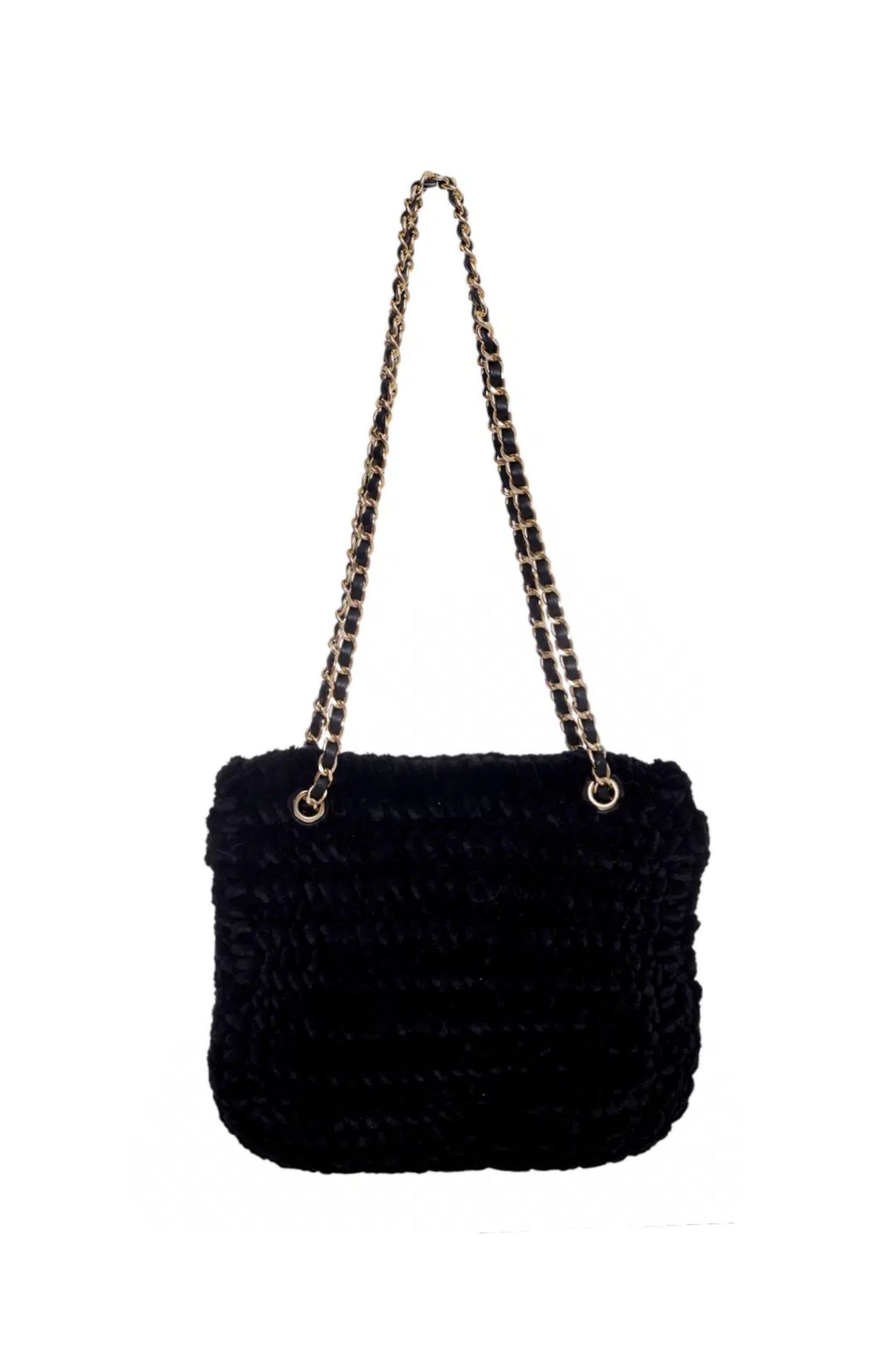 Υιοθετήστε το Cozy Chic στυλ με αυτήν τη μικρή, αλλά εντυπωσιακή τσάντα ώμου. Κατασκευασμένη από εξαιρετικά μαλακή πλεκτή Faux Fur (οικολογική γούνα) σε κλασικό χρώμα, είναι το ιδανικό αξεσουάρ για τις βραδινές ή χειμερινές εμφανίσεις σας. Διαθέτει  σχέδιο με χρυσή μεταλλική αλυσίδα που περνά μέσα από το λουρί και ιδιαίτερο μεταλλικό κούμπωμα. Το μέγεθος είναι ιδανικό για να χωράει τα απαραίτητα, λειτουργώντας ως clutch ή μικρή τσάντα χιαστί.