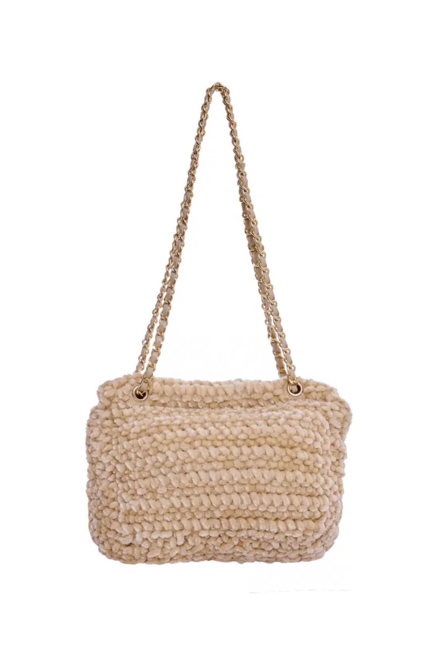 Υιοθετήστε το Cozy Chic στυλ με αυτήν τη μικρή, αλλά εντυπωσιακή τσάντα ώμου. Κατασκευασμένη από εξαιρετικά μαλακή πλεκτή Faux Fur (οικολογική γούνα) σε κλασικό χρώμα, είναι το ιδανικό αξεσουάρ για τις βραδινές ή χειμερινές εμφανίσεις σας. Διαθέτει  σχέδιο με χρυσή μεταλλική αλυσίδα που περνά μέσα από το λουρί και ιδιαίτερο μεταλλικό κούμπωμα. Το μέγεθος είναι ιδανικό για να χωράει τα απαραίτητα, λειτουργώντας ως clutch ή μικρή τσάντα χιαστί.