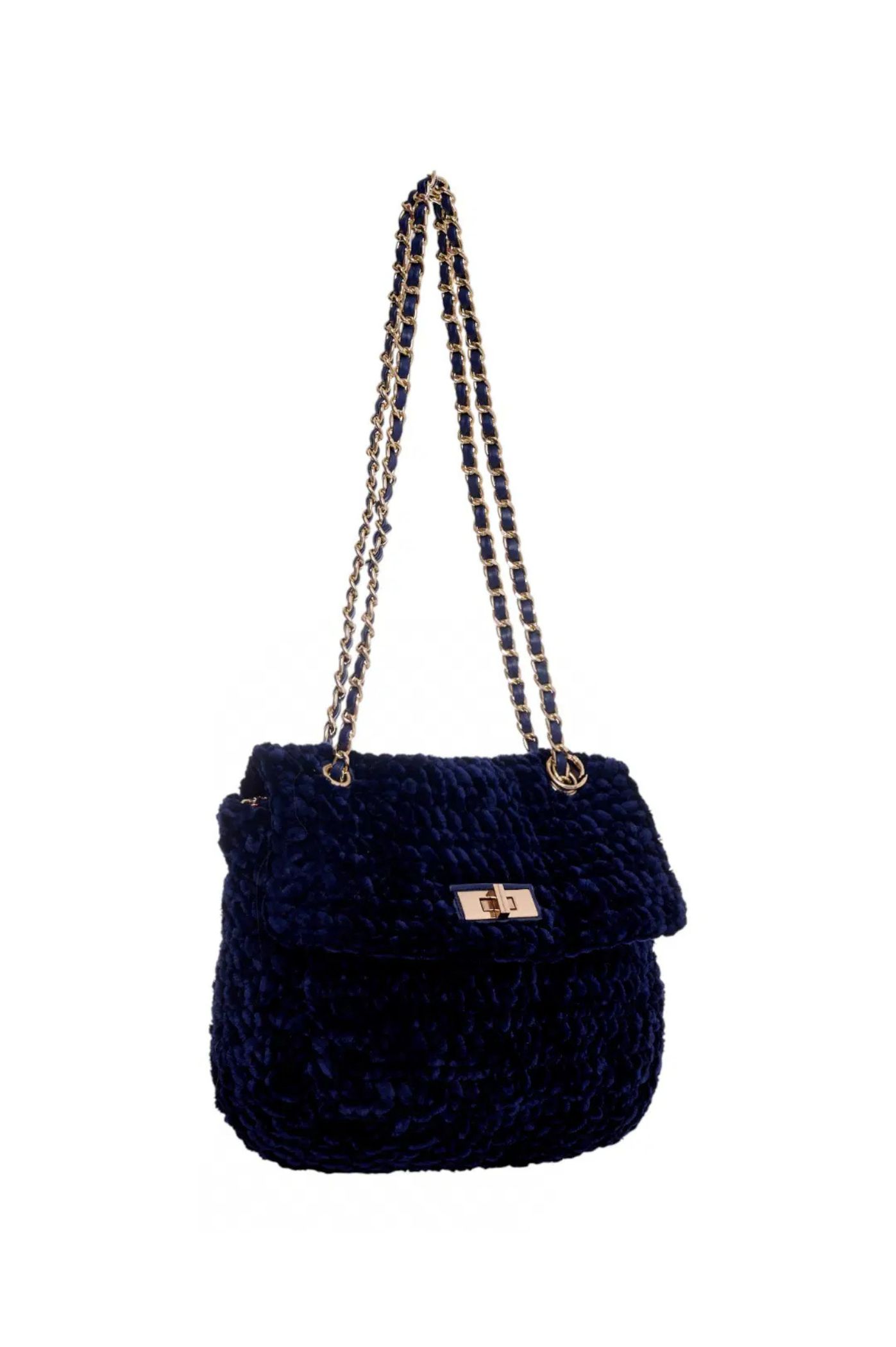 Υιοθετήστε το Cozy Chic στυλ με αυτήν τη μικρή, αλλά εντυπωσιακή τσάντα ώμου. Κατασκευασμένη από εξαιρετικά μαλακή πλεκτή Faux Fur (οικολογική γούνα) σε κλασικό χρώμα, είναι το ιδανικό αξεσουάρ για τις βραδινές ή χειμερινές εμφανίσεις σας. Διαθέτει  σχέδιο με χρυσή μεταλλική αλυσίδα που περνά μέσα από το λουρί και ιδιαίτερο μεταλλικό κούμπωμα. Το μέγεθος είναι ιδανικό για να χωράει τα απαραίτητα, λειτουργώντας ως clutch ή μικρή τσάντα χιαστί.