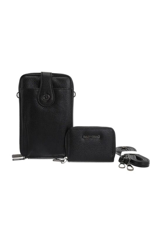 Αναδείξτε το στυλ σας με αυτό το δερματίνη τσαντάκι-πορτοφόλι. Ιδανικό αξεσουάρ για να έχετε όλα τα απαραίτητα μαζί σας, χωρίς τον όγκο μιας μεγάλης τσάντας. Διαθέτει μια ευρύχωρη θήκη για το κινητό και κάρτες, που μπορεί να φορεθεί ως crossbody χάρη στο αποσπώμενο λουράκι, και ένα μικρότερο πορτοφόλι με φερμουάρ για τα κέρματα και άλλα μικροαντικείμενα. Και τα δύο μέρη είναι κατασκευασμένα από δερματίνη και έχουν κομψές μεταλλικές λεπτομέρειες. Είτε για τη βόλτα, είτε για μια βραδινή έξοδο, είναι η τέλεια λύση για να έχετε τα χέρια σας ελεύθερα, ενώ παράλληλα διατηρείτε το στυλ σας.