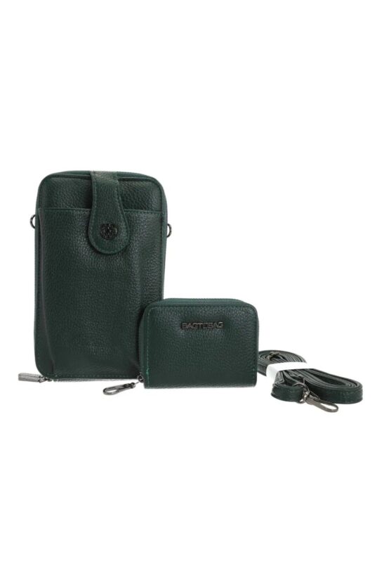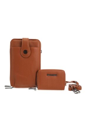 Αναδείξτε το στυλ σας με αυτό το δερματίνη τσαντάκι-πορτοφόλι. Ιδανικό αξεσουάρ για να έχετε όλα τα απαραίτητα μαζί σας, χωρίς τον όγκο μιας μεγάλης τσάντας. Διαθέτει μια ευρύχωρη θήκη για το κινητό και κάρτες, που μπορεί να φορεθεί ως crossbody χάρη στο αποσπώμενο λουράκι, και ένα μικρότερο πορτοφόλι με φερμουάρ για τα κέρματα και άλλα μικροαντικείμενα. Και τα δύο μέρη είναι κατασκευασμένα από δερματίνη και έχουν κομψές μεταλλικές λεπτομέρειες. Είτε για τη βόλτα, είτε για μια βραδινή έξοδο, είναι η τέλεια λύση για να έχετε τα χέρια σας ελεύθερα, ενώ παράλληλα διατηρείτε το στυλ σας.