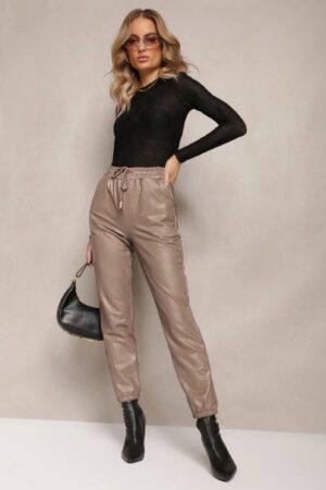 ΠΑΝΤΕΛΟΝΙ ΔΕΡΜΑΤΙΝΗΣ JOGGER ΜΕ ΛΑΣΤΙΧΟ ΣΤΗ ΜΕΣΗ – ΚΑΦΕ